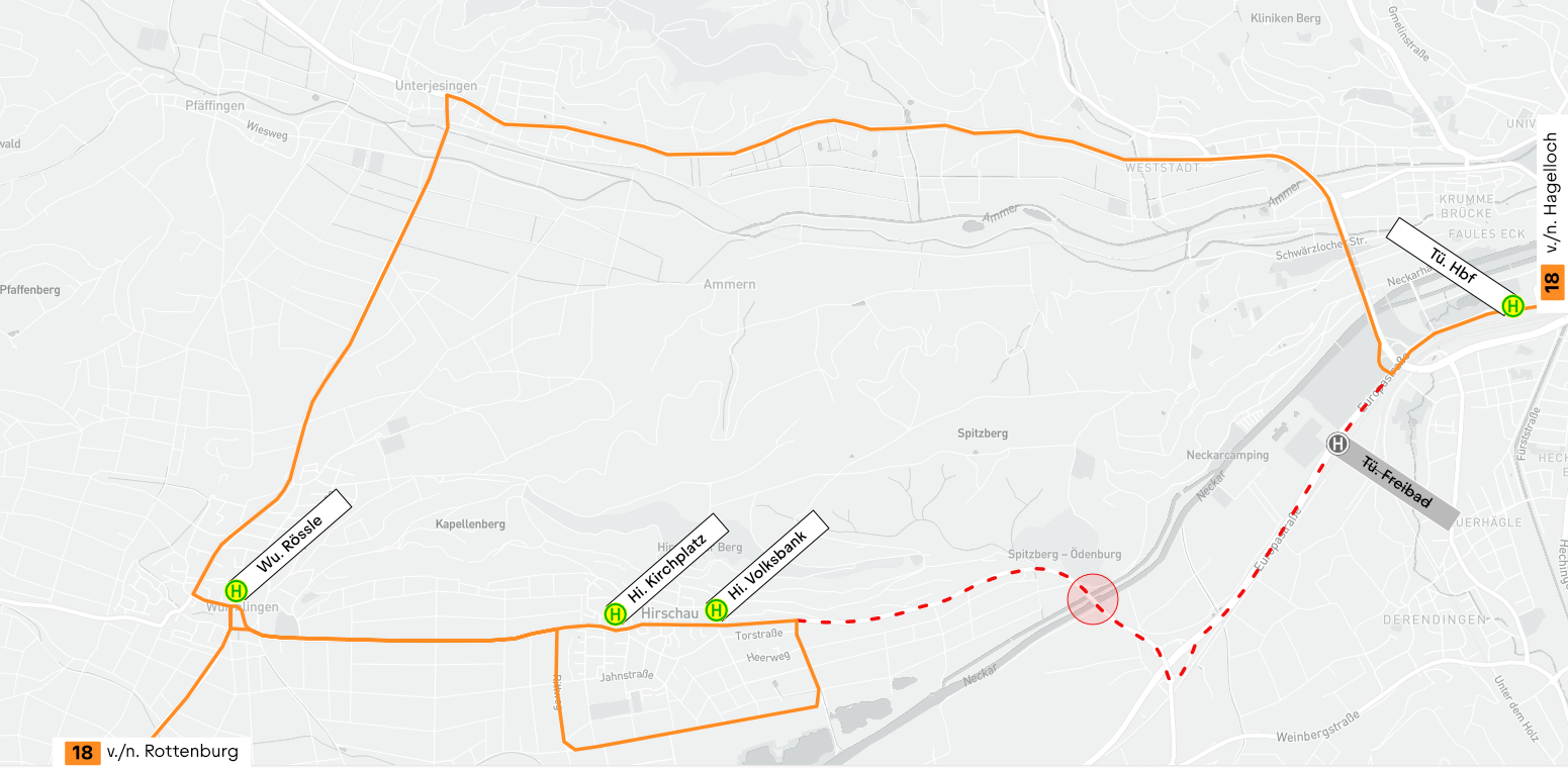 Die Linie 18 wird währenddessen umgeleitet über Unterjesingen.